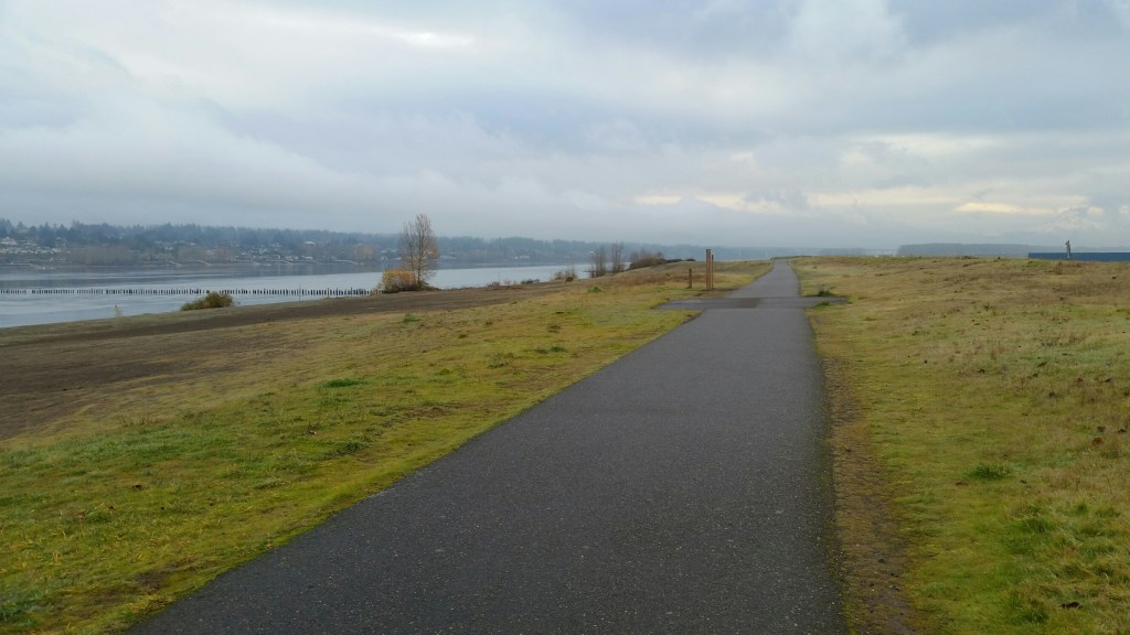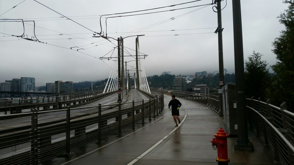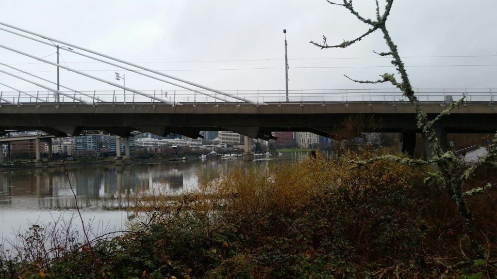 DEC 27– On an overcast dry day that turned partly sunny downtown, today’s six bikers were rewarded with some shimmering views of the Willamette River.