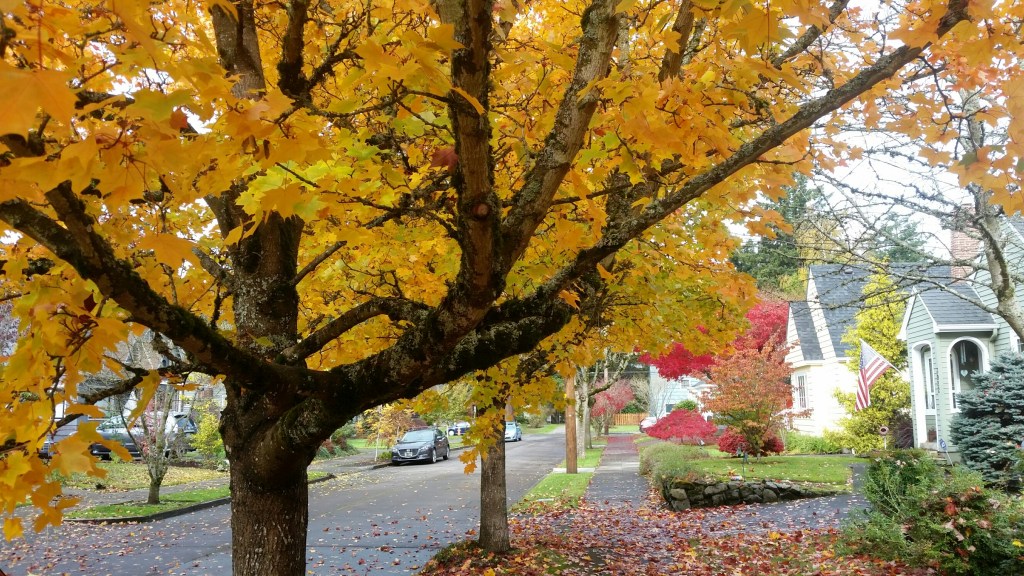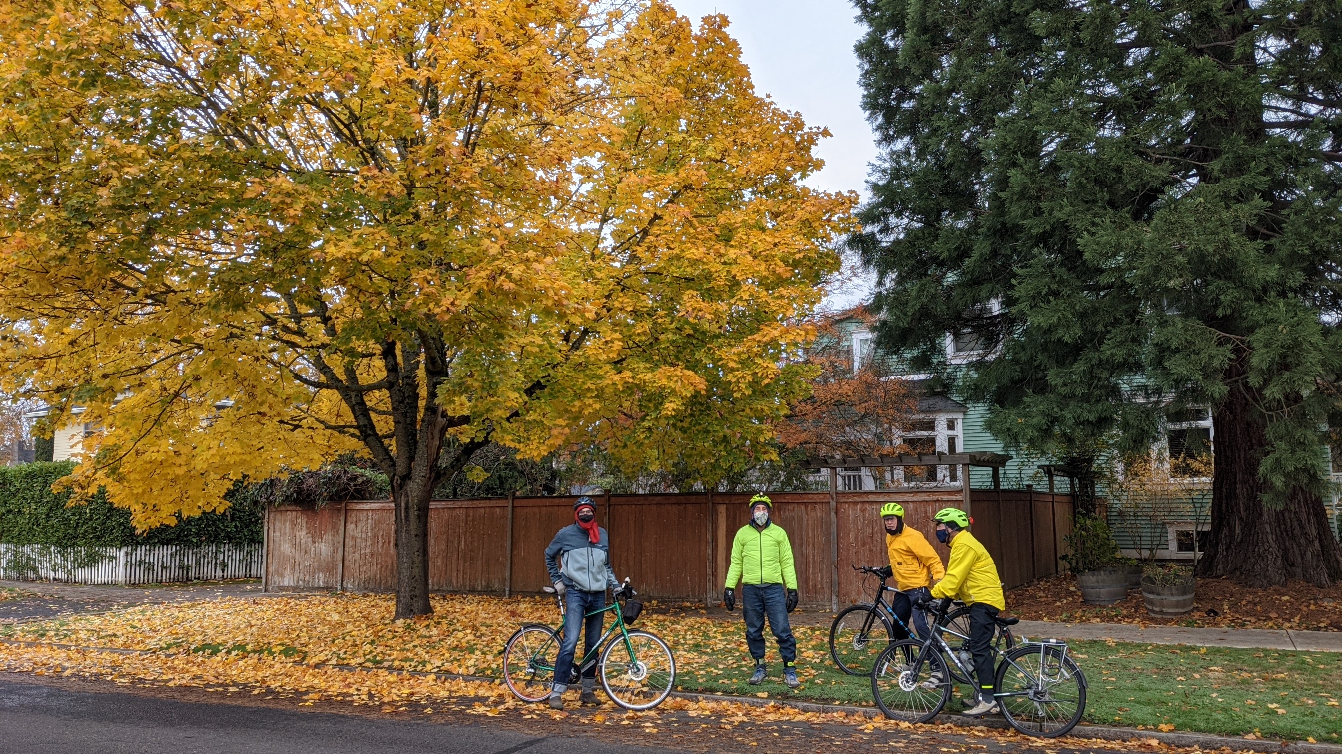 NOV. 15- Five riders went out on this dry brisk morning to Willamette Blvd and were lucky to see some still lovely colors. The maze-like route back home was not as straight as it might have been, going through Kenton and N. Interstate to arrive at N. Skidmore.