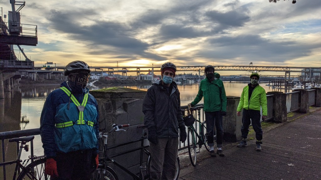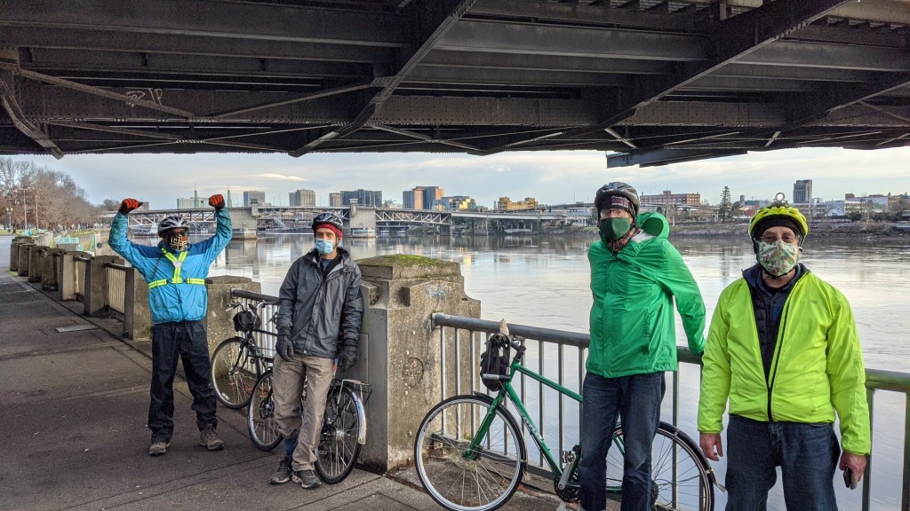 JAN 4 –Only two riders were available this overcast first-ride-of-2021morning. Their route headed first south to Holgate, then west to the east side of the Willamette before returning back to NE.