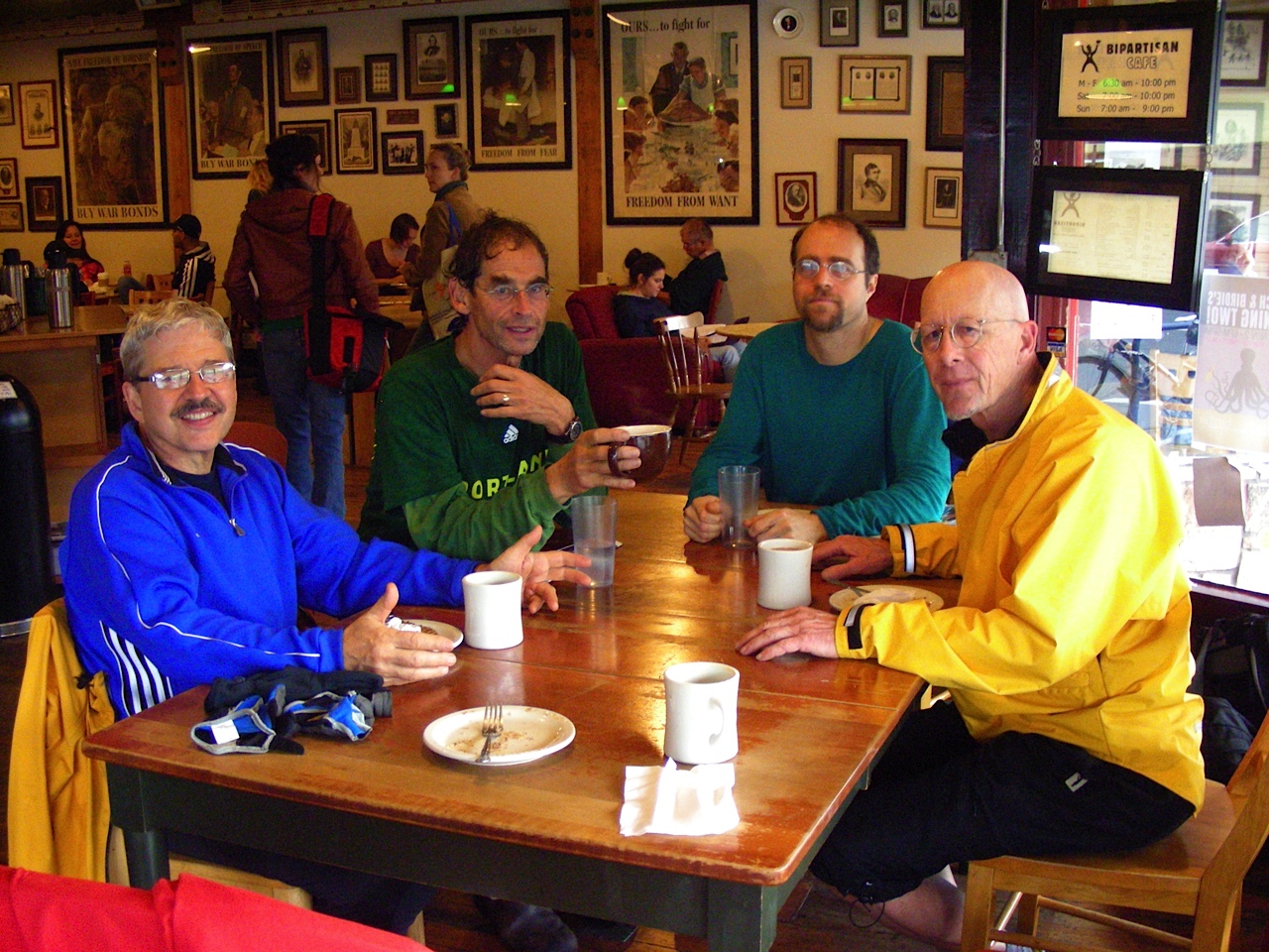 Today was a red letter day as we biked up both Rocky Butte and Mt. Tabor before settling in at one of our favorite shops. We noticed a new soft couch had been added, but otherwise the strengths that have made Bipartisan the quintessential perfect fit for its neighborhood, remain. There’s the lively buzz of conversation and activity when you enter, but the shop is big enough that you never feel pushed to leave; the morning bakery is very inviting and we’re told the pies, sandwiches, soups and other foods are equally good; and we enjoy the political decor. We appreciate shops that undertake extracurricular community building activities, and understand Bipartisan doesn’t; but we are also aware that Bipartisan maintains 6:30 a.m. to 10 p.m. hours without serving alcohol, and that speaks volumes for the community center role it plays in Montavilla. 7901 SE Stark. http://www.bipartisancafe.com/