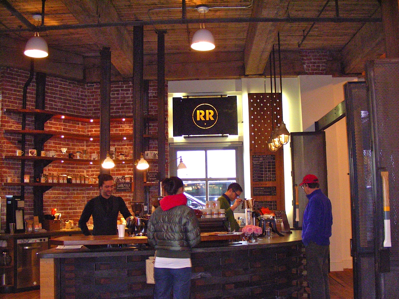 An out-of-the-way discovery in the NW industrial district, whose delightful layout made us question some of our hang out assumptions. No, there’s not many seating options, nor any reading material, nor bike parking, et. al; still, the perfect siting of the shop in the atrium of the historic Electric Schoolhouse Building, plus the juxtaposition of modern coffee equipment and a black-shirted barista with the room’s huge beams, provoked creative flights of fancy. An added plus for us is this shop’s location: it’s the only shop that allows us to bike north on Naito Parkway off the lower Steel Bridge. Ristretto Roasters.com 2181 NW Nicolai St.