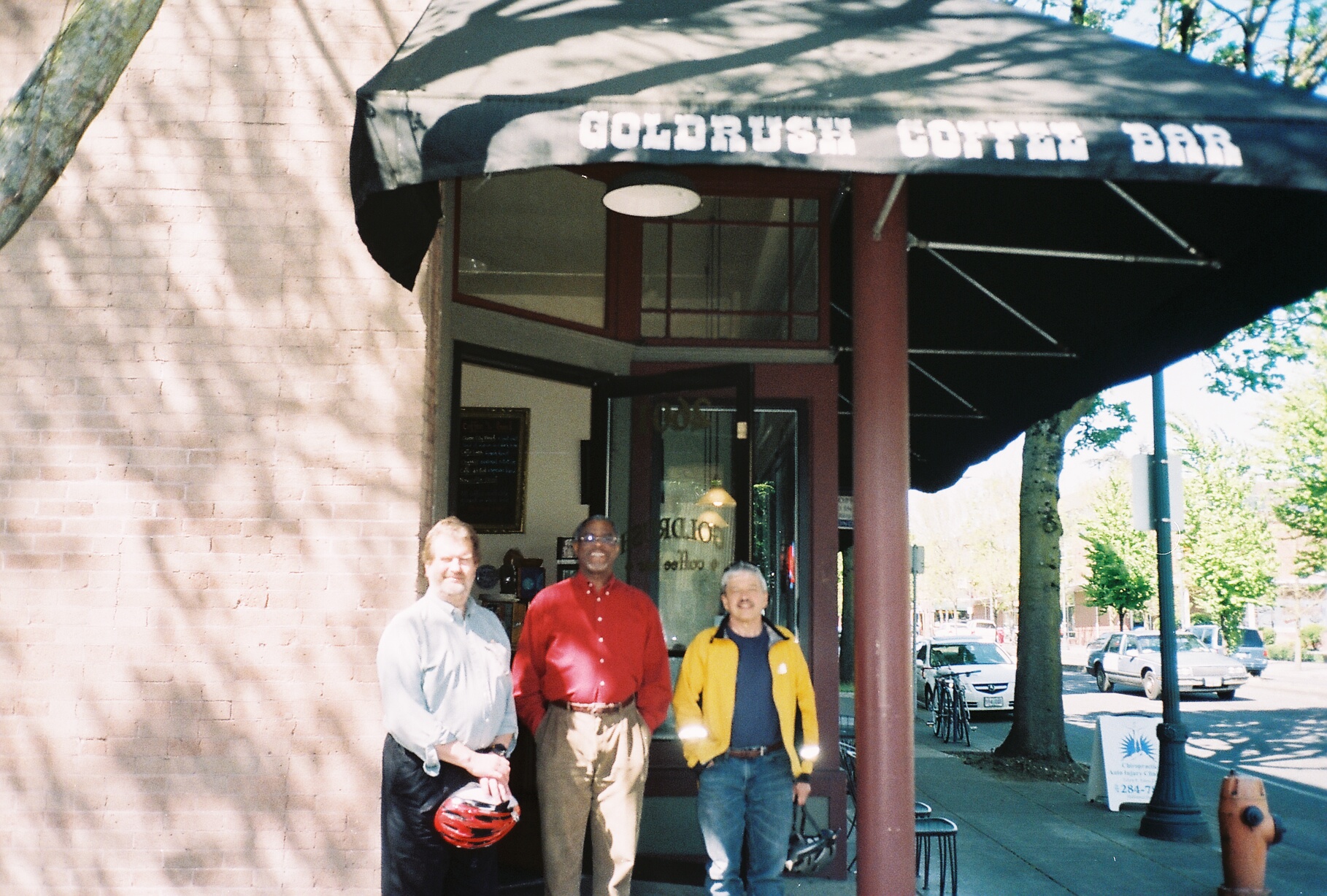 Long before we were Sunday morning bicyclists, we were Sunday morning joggers. This Monday afternoon’s bicycle outing to Goldrush celebrated the visit of a distinguished alumnus of the jogging group, visiting from Denver. With its high ceilings, brick wall to the south, and narrow layout, the shop conveys feelings of an earlier time in the northwest. There’s some variety of seating, but the narrow floor plan doesn’t allow for many soft seats. Still the ambiance is quite comfortable as we appreciated the old-time touches. 2601 NE MLK Jr. Blvd.