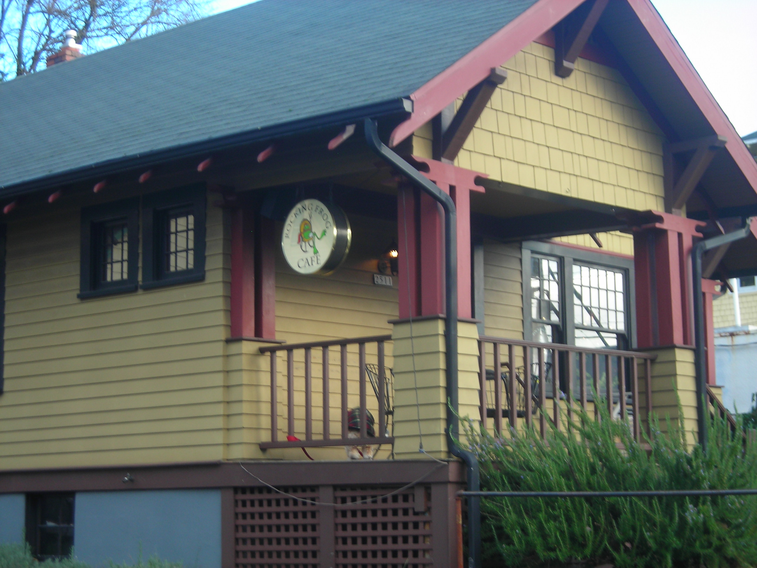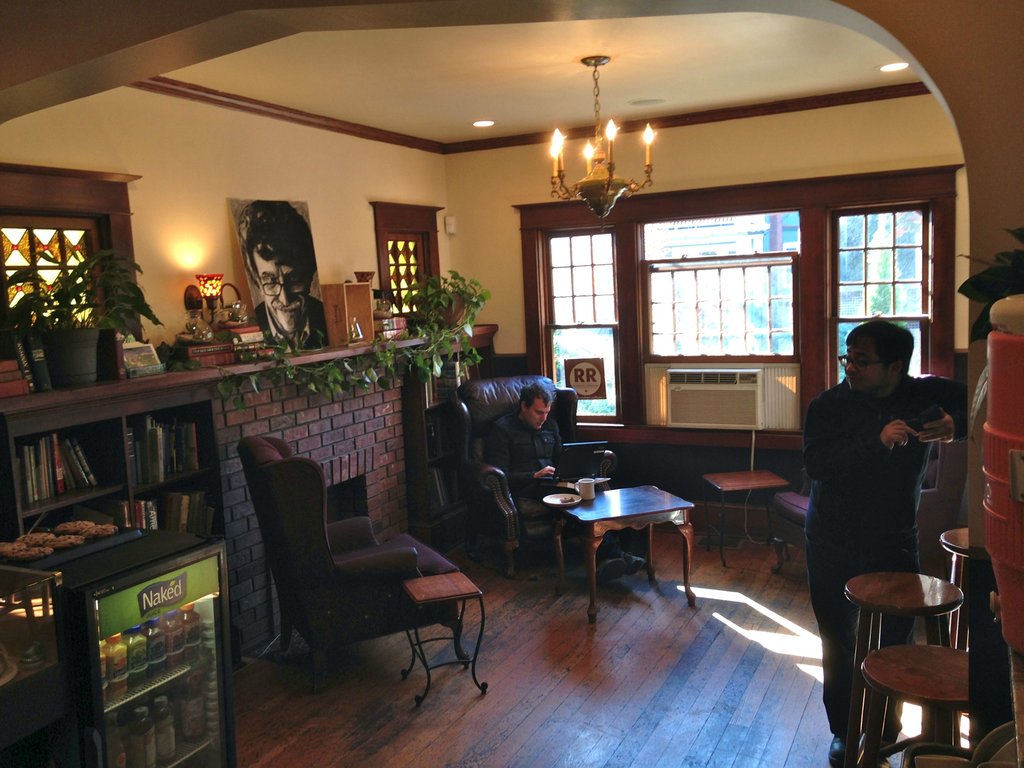 On a beautiful sunny morning – which we especially adored after last week’s dark rainstorm – 6 of us took the 55 minute scenic route to the Frog, which is usually a 25 minute direct ride. The Rocking Frog epitomizes the seating variety that we appreciate. The atmosphere in the library with its leather chairs around study tables surrounded by books, differs from the cushioned arm chairs of the relaxed living room, which differs again from the utilitarian seating of the game room. (Additional seating in the backyard furthers these choices in warm weather.) No wonder we’re taken with how the owners took full advantage of what they had to work with. Our perch today was in the gameroom – which we had to ourselves – for 90 minutes of mostly political/philosophical discussion. rockingfrogpdx.com 2511 SE Belmont