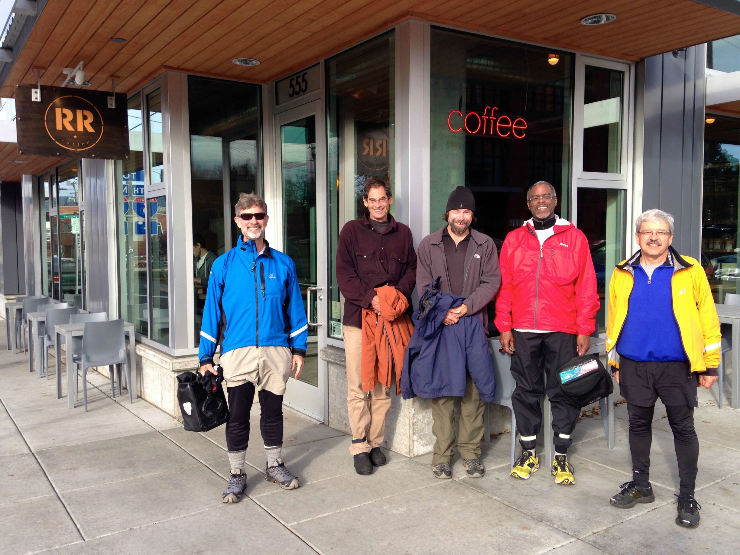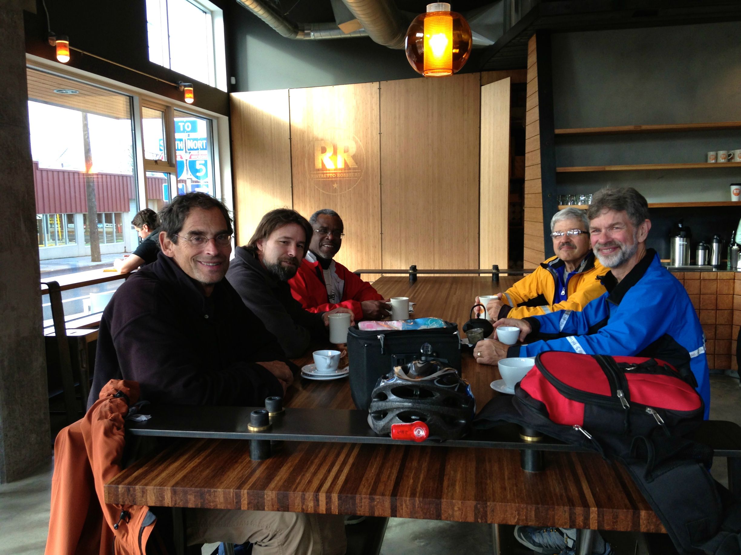 After closing its original shop (admittedly a cubby hole,) in our central NE neighborhood, Ristretto replaced it with a new inner E shop near the Burnside Bridge. Six of us ventured down and appreciated the industrial feel and clean lines of the new space, but also wished there were more seating options, as well as other indications that they wanted us to stay a while. We took over the central table and discussion topics included T’s wariness around his son’s college interview later that day, the yurt that friend Joel had built in Homer, AK, and frustrations around the healthcare system’s rollout. 555 NE Couch ristrettoroasters.com