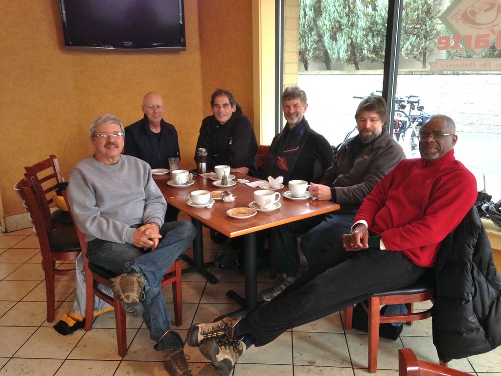 Despite a frigid 15 degrees, seven stalwarts came together to spend quality time together around a coffee shop table. We originally fantasized of crossing the river to go to a shop downtown, but 2 miles out it was clear not all of us were properly protected from the elements, causing us to end our journey at Caffe D’Arte in the Lloyd district. With lots of windows and good lighting, this European inspired shop – its TVs often turned on to European soccer – is a bright spot in more ways than one. Its hangout limitation is that its interior seating is limited. Still we hung out here significantly longer than in most places, probably not looking forward to getting back out into the cold. Topics included frozen pipes and how Oregonians in the 1920s protected them, the heritage tulip tree outside, the standards for a heritage tree, the reasons behind coffee shop turnover, Willamette Week’s listing of new shops to visit, Alaska’s tax structure, the book The Righteous Mind’s analysis of conservative and liberal prisms and values, and the environmental costs of energy independence. 1615 NE 15th Ave.