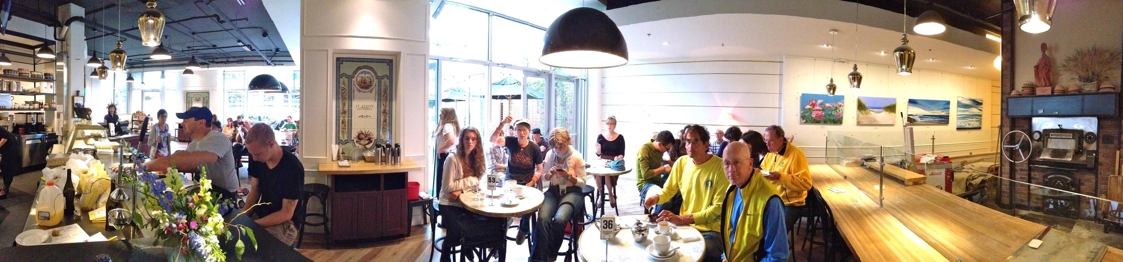 World Cup action again coaxed us to a shop showing today’s 9:00 game – The Netherlands vs. Mexico – and today we visited St. Honore’s relatively new Division store. Our three riders/soccer enthusiasts were very pleased at how much better it was for hanging out than the NW store with its limited seating.