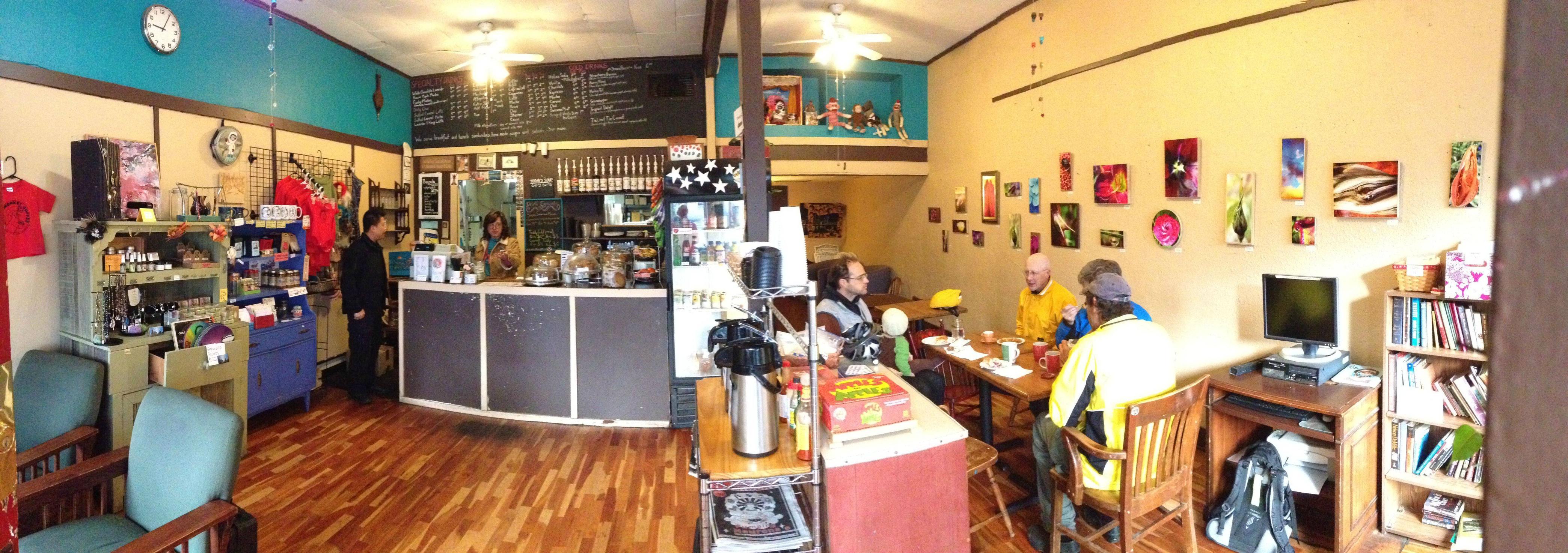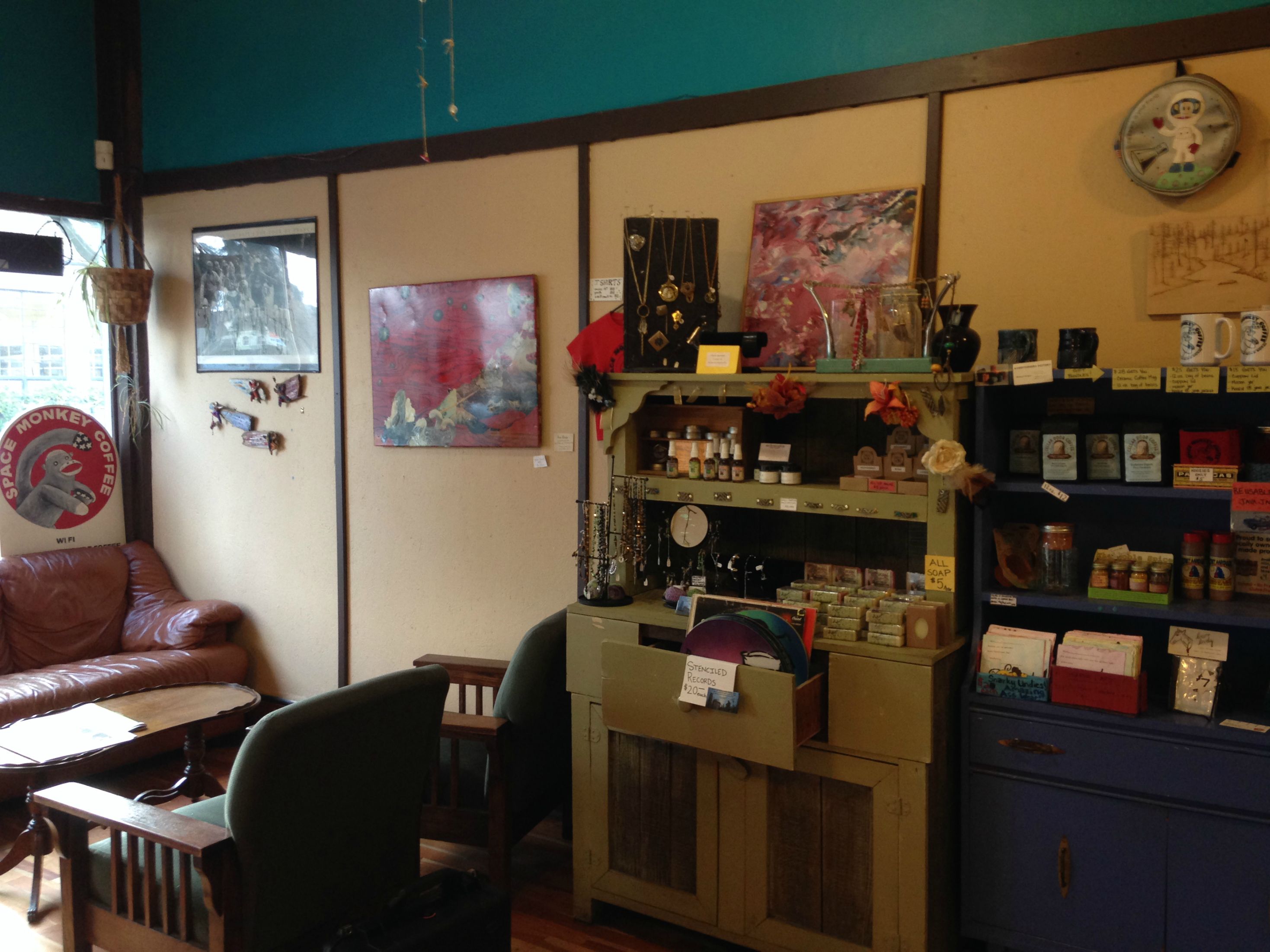 There’s a lot crammed into the Monkey’s cozy space, including a small kids’ area of which Sidney took advantage, varied seating options, art on the walls, and games to play. With tasty drinks and treats, it was easy to become involved in an extended conversation.