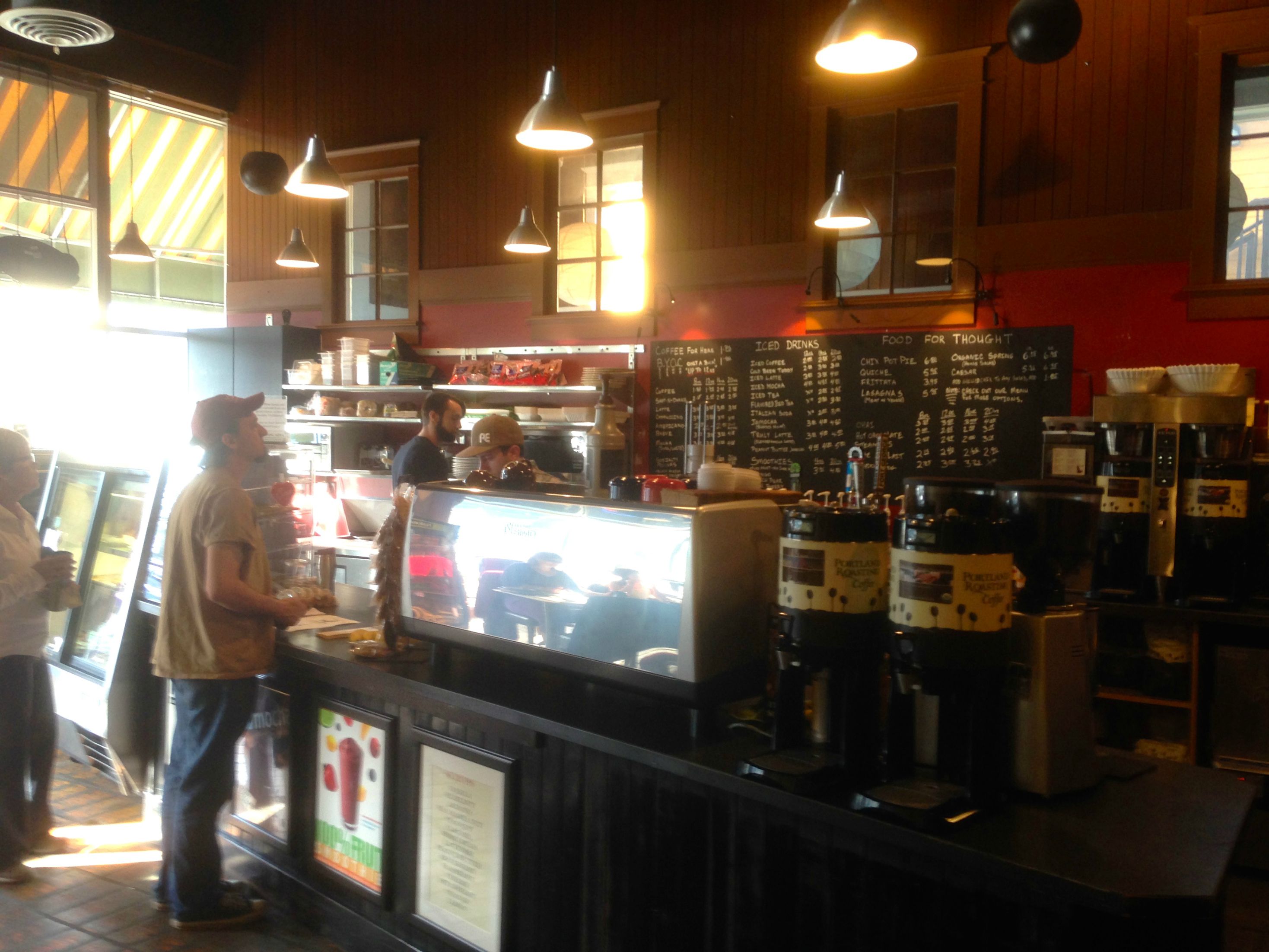 Stark Street Station, which sits in a portion of a former fire station, is more of a convenience restaurant than coffee shop. It has refrigerated cases with quiches and salads, as well as the capability to make soup and sandwiches. Thus, while they don’t mind having patrons hang out while it is slow, and the building’s interesting history is well presented on its walls, seating options are limited and they don’t have the array of homey touches we see in top notch hangouts.