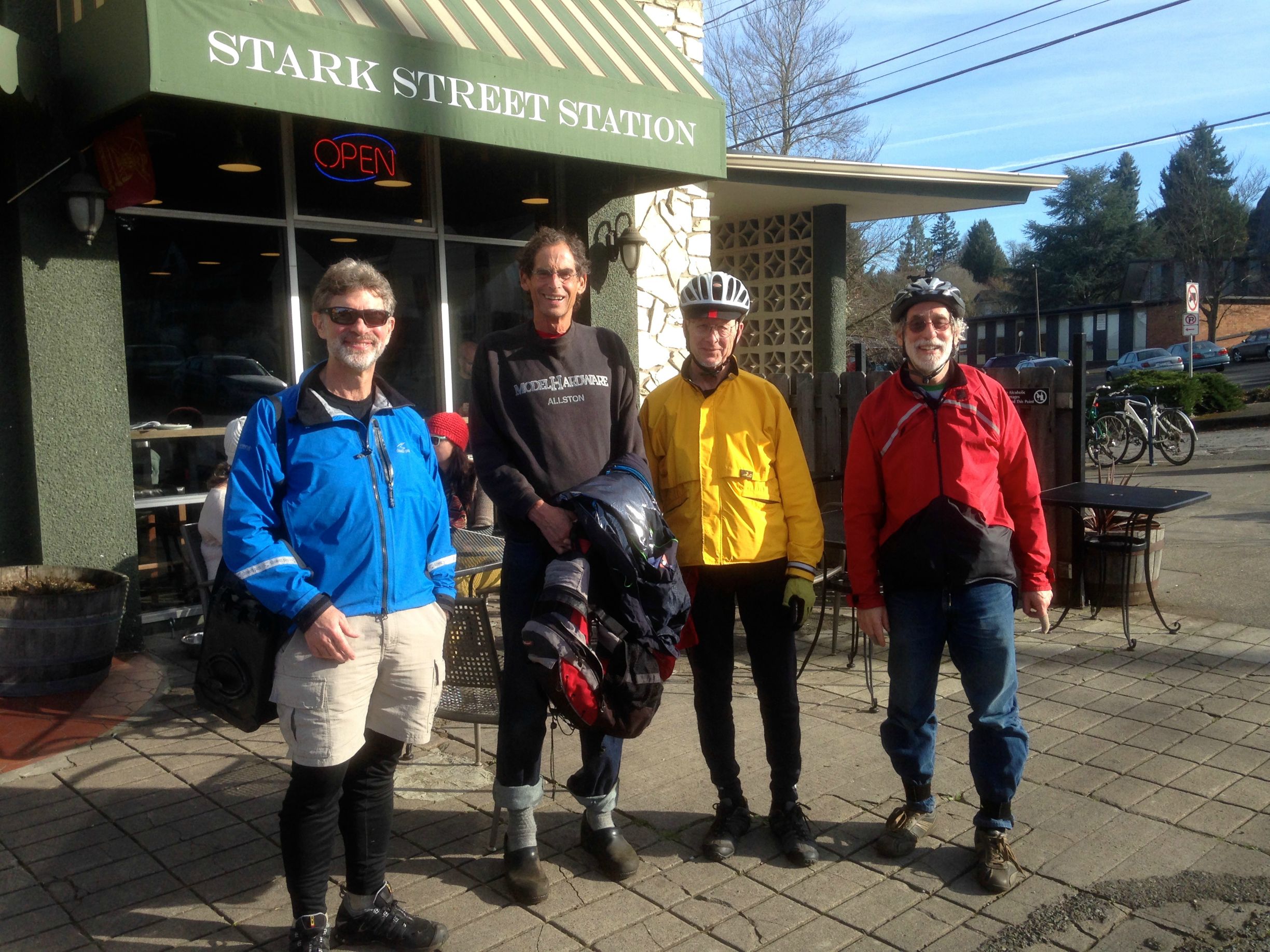 On a brisk clear morning, four riders took the stimulating scenic route – via the top of Mt. Tabor Park – to arrive at today’s destination.