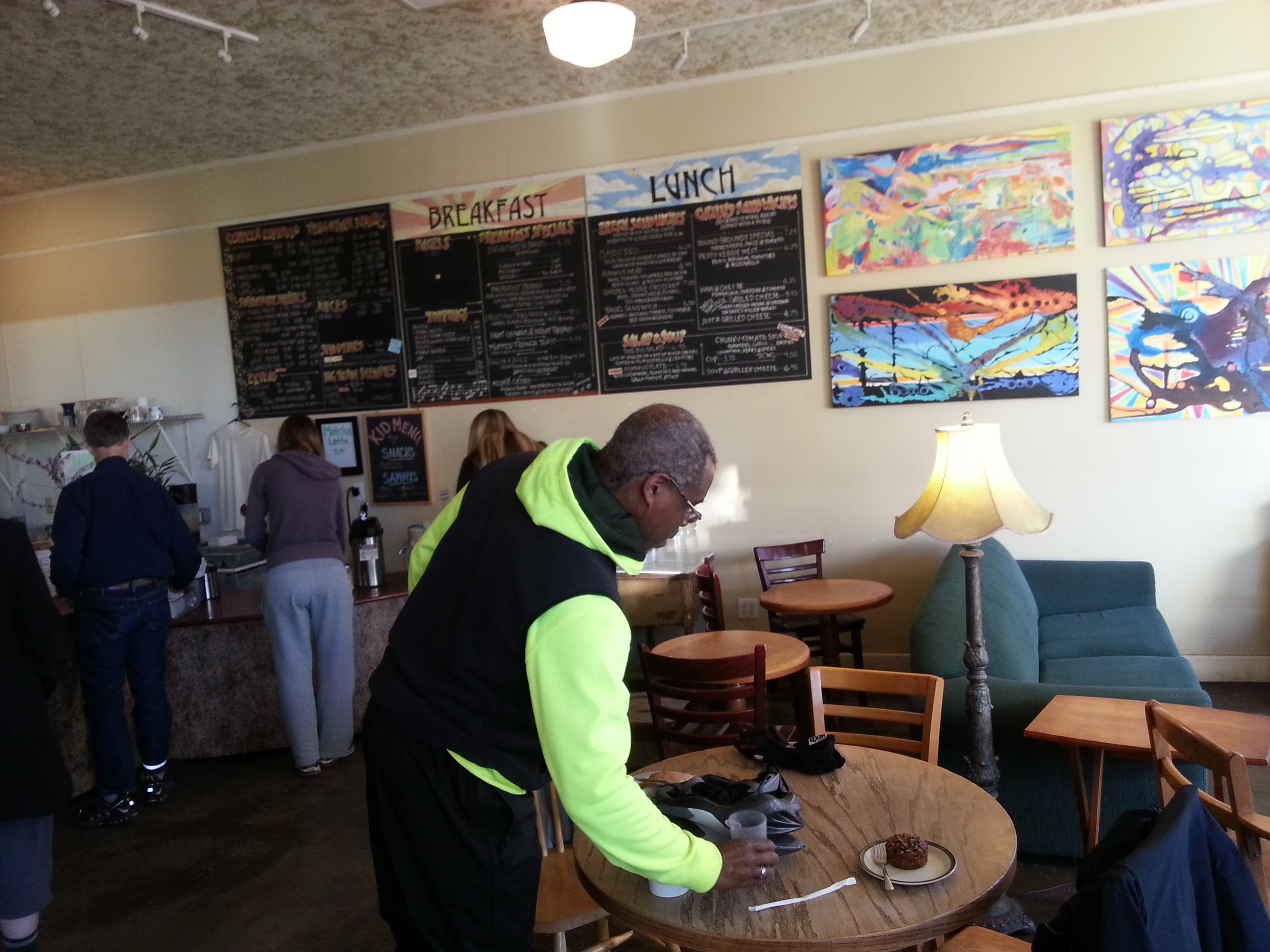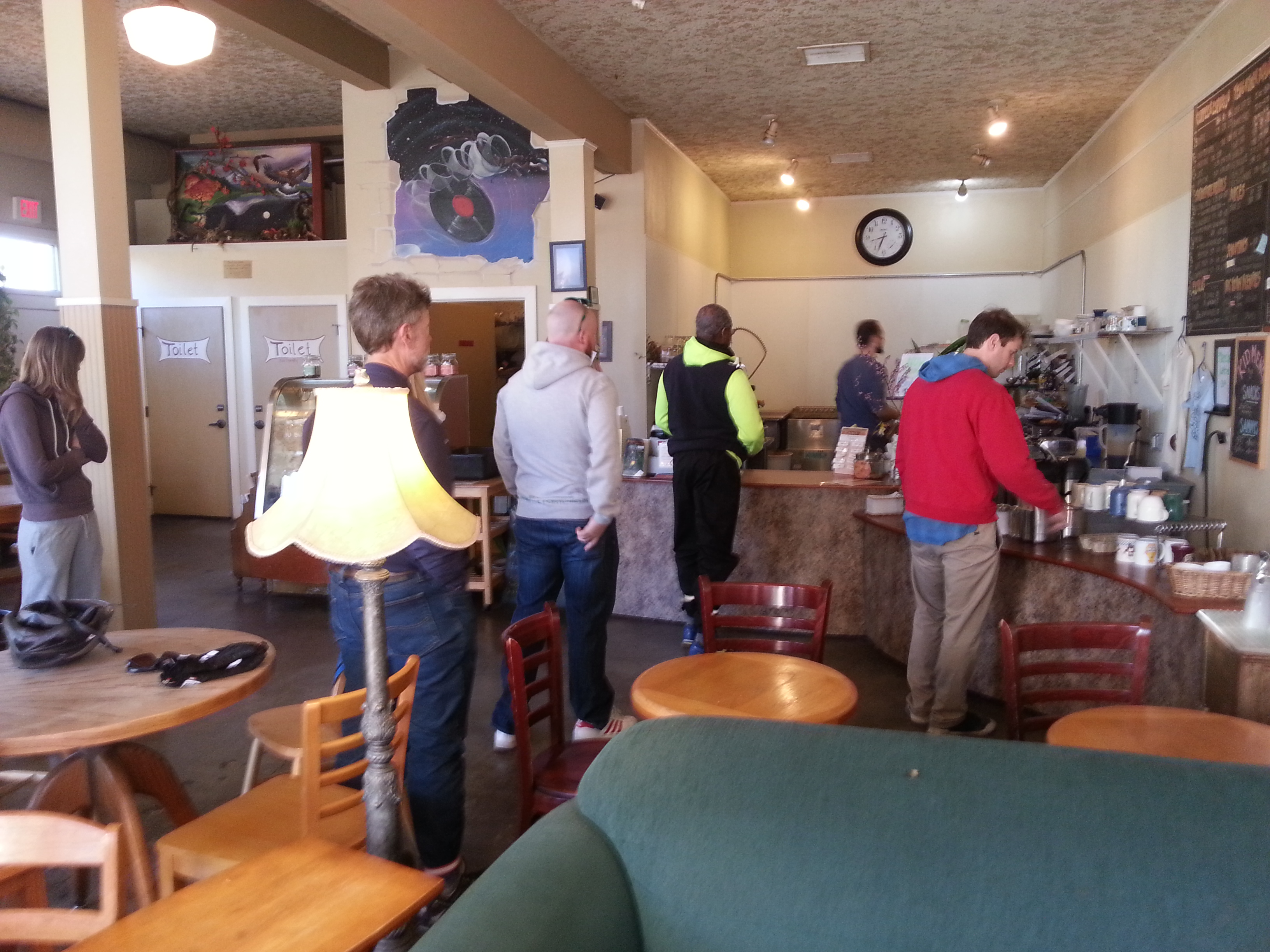 Upon entering the three of us were quickly reminded that Sound Grounds is primarily about community engagement and gatherings. Mondays are for psychic meetings, on Wednesdays there are clowns, and their chalkboard urged patrons to advocate against Monsanto’s latest effort.