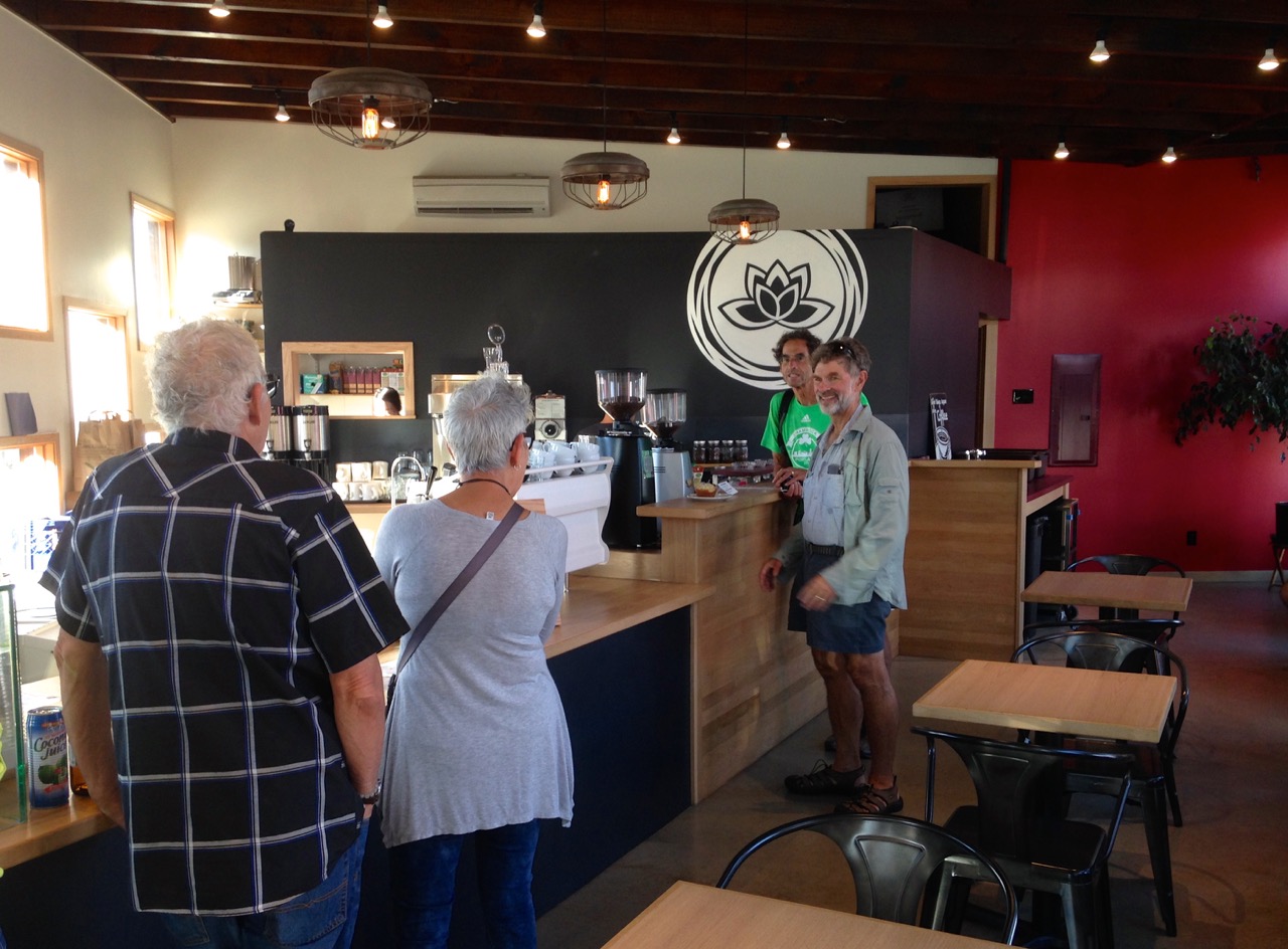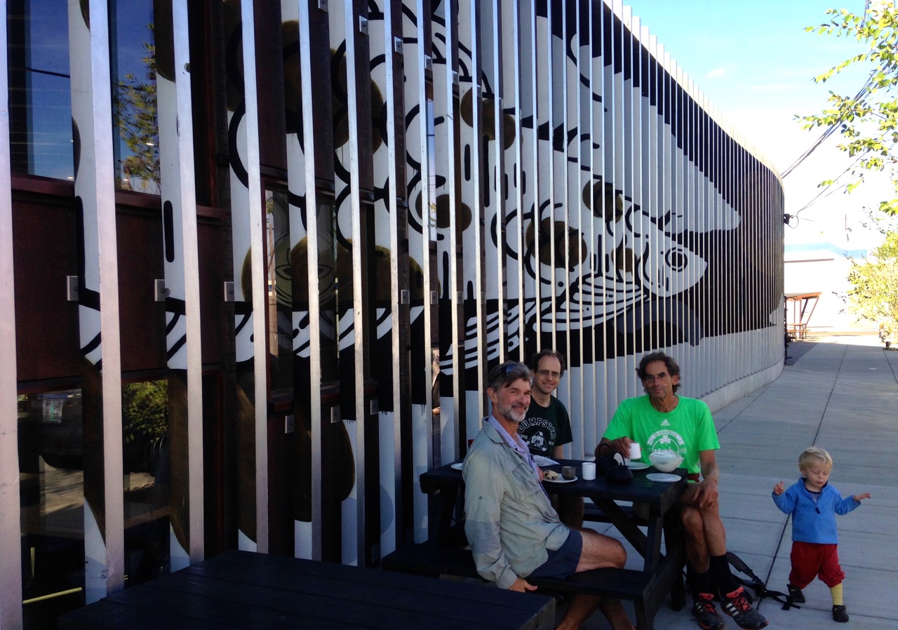 There’s a challenge in making such a awkwardly shaped, and small, space inviting. And thus the 4 and a half of us chose to sit at the picnic table and bench on the sidewalk rather than stay inside. Maybe over time the shop will be able to find a way to make the inside as alluring as the the outside architectural designs.