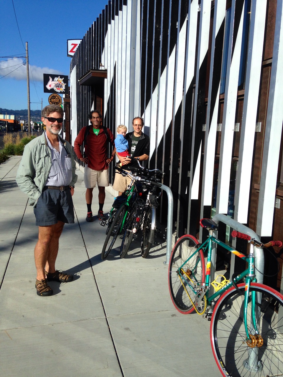 Because the site is relatively close to where we congregate, we took the scenic route via SE Hawthorne to arrive here. And with the sun shining on us through most of the route, we were in talkative mode once we arrived: how does a project like this pencil out; what can Cully learn from it; what kind of joint promotions are possible among the tenants; what can be done to make it more comfortable. 2705 NE Sandy Sevenvirtuespdx.com