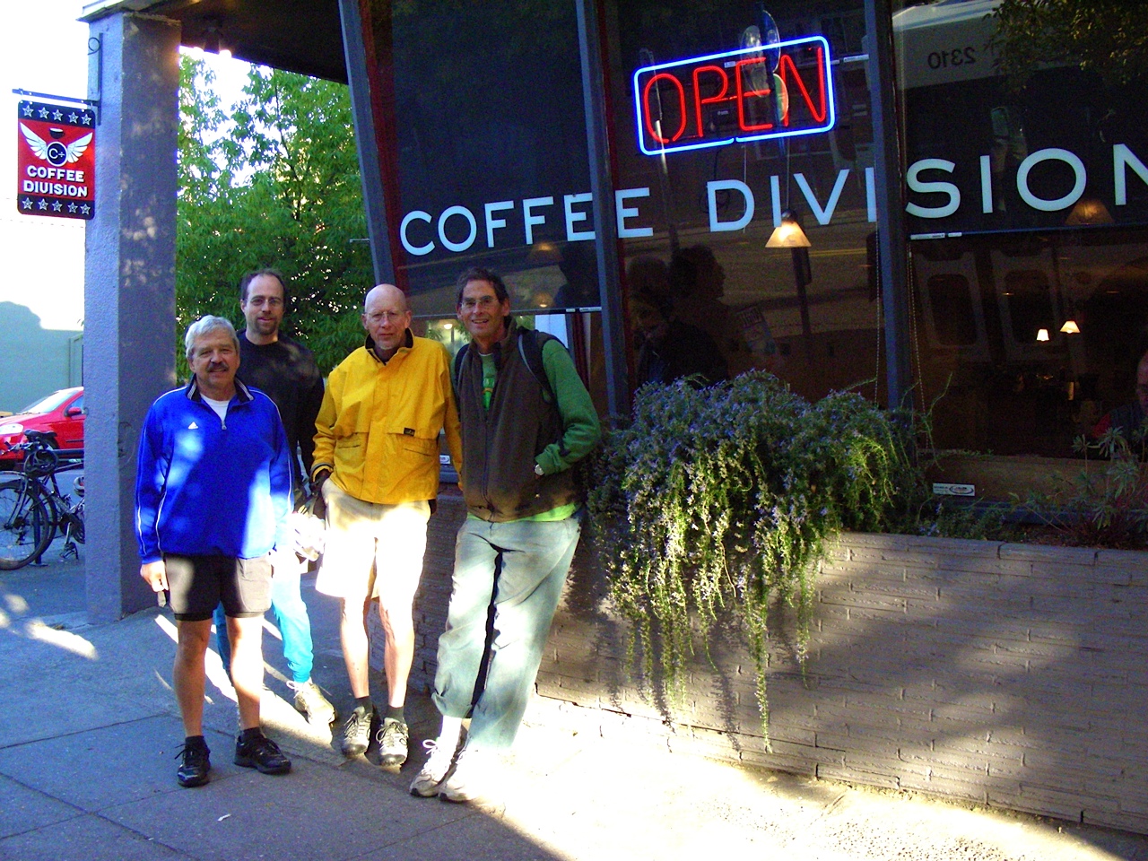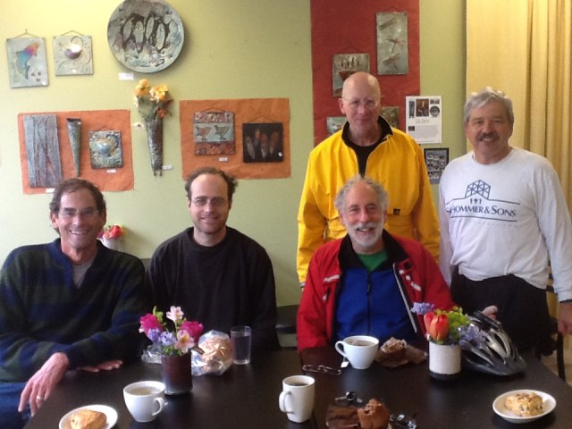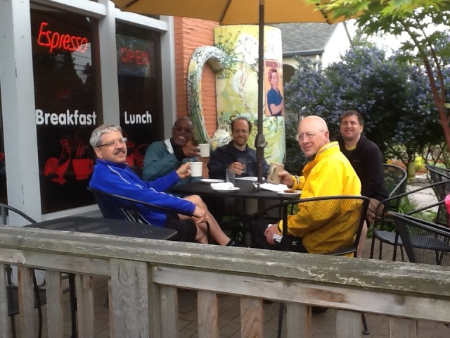 WHO ARE WE?? A loose group of nine semi-regular recreational bicyclists, who depart from Wilshire Park (in NE) Sunday mornings at 8; all are between the ages of 45 and 73, all are male, a slight plurality of whom are coffee drinkers. BUT MOST IMPORTANT FOR YOU TO KNOW IS THAT FOR US, THE ELEMENTS THAT MAKE HANGING OUT A REWARDING EXPERIENCE – AN ESTABLISHMENT’S PHYSICAL AND SOCIAL CHARACTERISTICS – ARE PRIMARY, MORE IMPORTANT THAN THE QUALITY OF A SHOP’S COFFEE OR ITS PASTRIES. Again, it is the elements that improve our hanging out experience that we focus on in the blog.