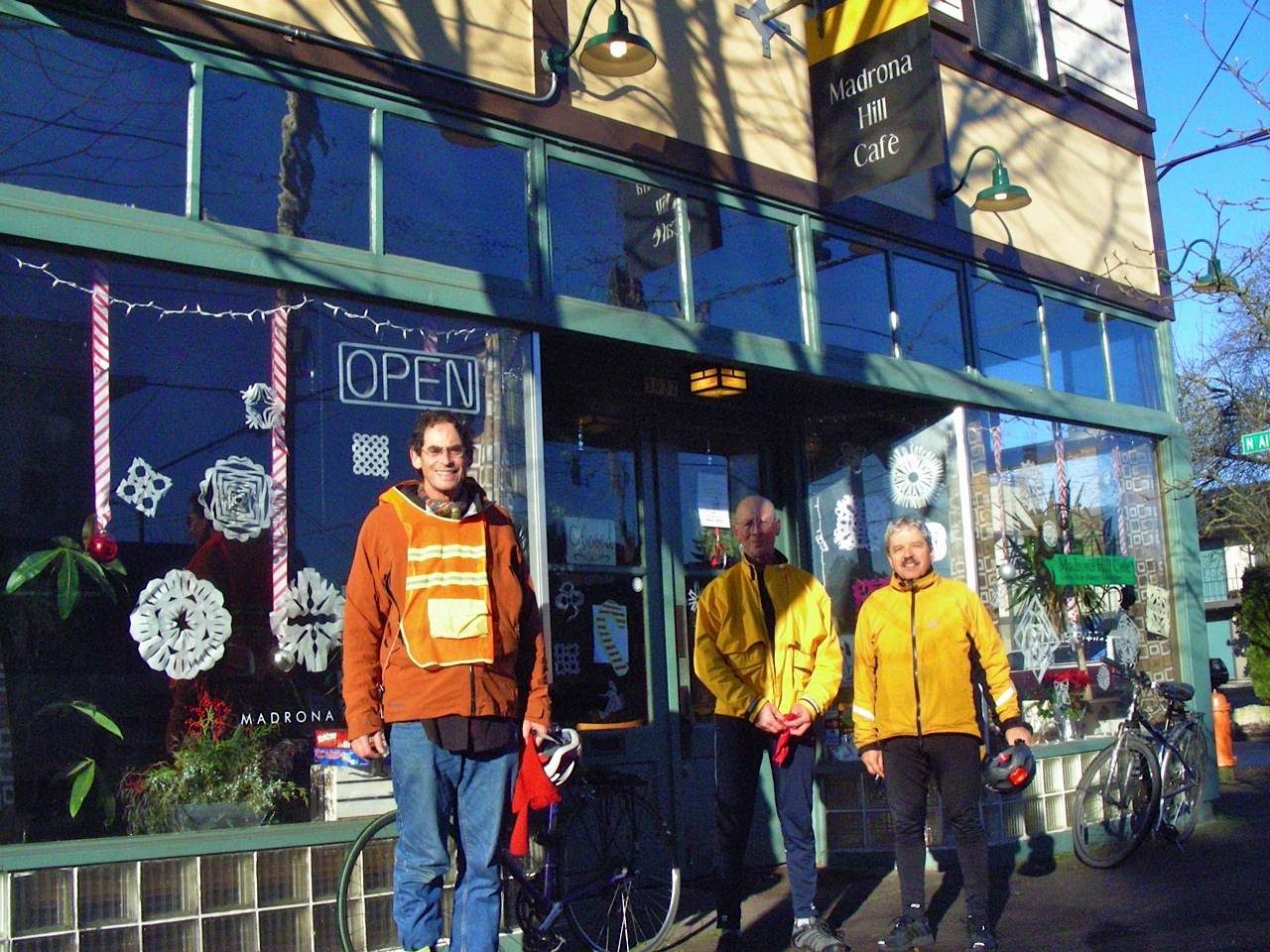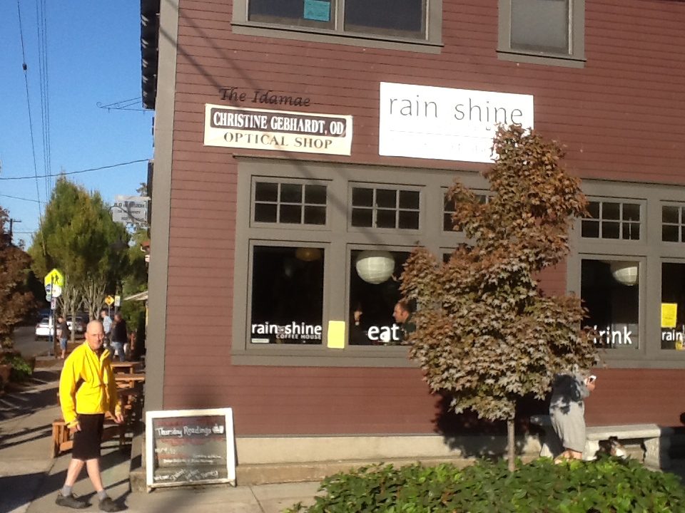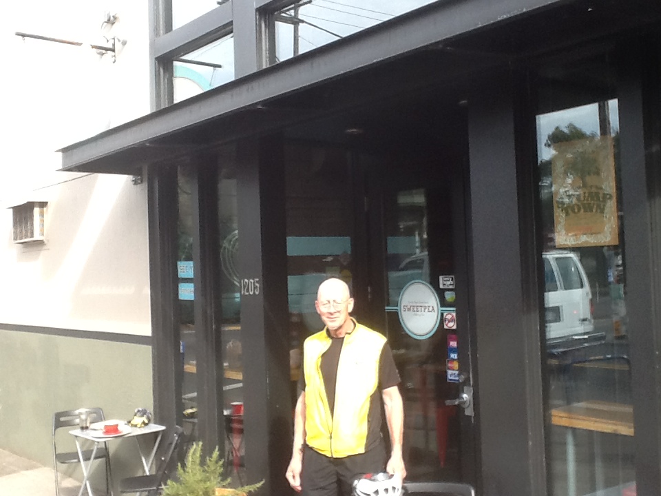 | SE- Rain or Shine Coffee House 5941 SE Division Visited in 2011, revsited Sept. 30, 2012 | 3.5 cups- A revisit after 18 months – brought on by a flat tire – resulted in our seeing the wonderful small changes (reading magazines, board games, soft couches) that have taken place here. Each sends an invitation to come hang out in our brightly lit refuge with home baked pastries. http://rainorshinepdx.com/ | 4.2 mi.dir.6 mi. via Mt. Tabor |