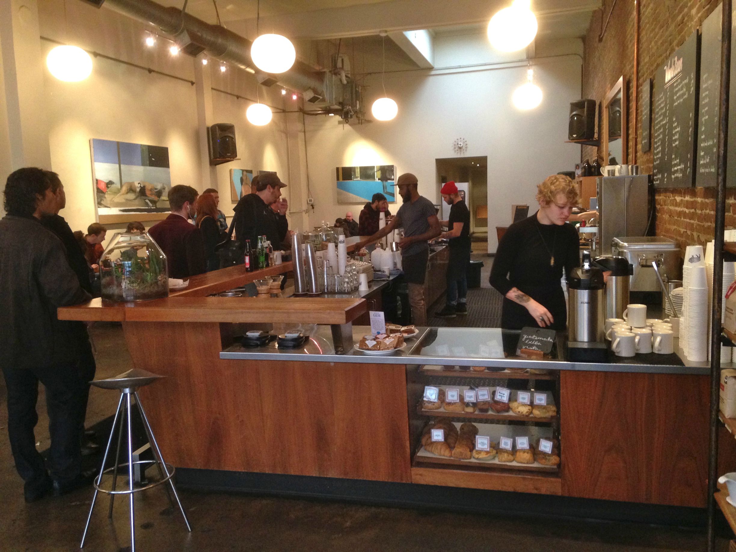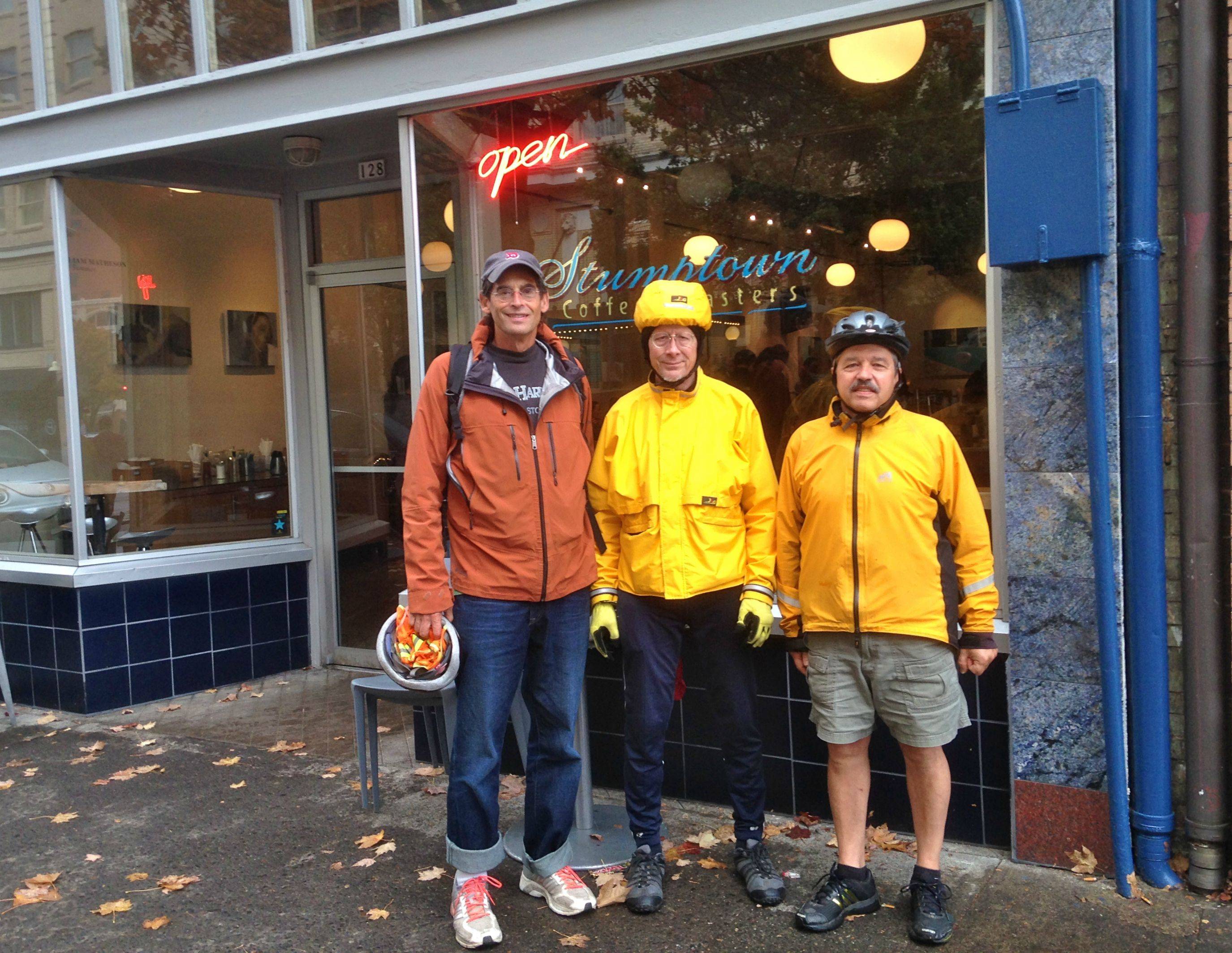 After last week’s successful trip to Barista Pearl, we returned to NW 13th and another quirky shop. When Nossa Familia says Bar, that’s what they mean rather than “shop.” This site is the company’s warehouse and roaster, and a small counter attached to the warehouse sells retail coffee and assorted gifts. Inside there are only 2 stools for sitting, so we brought in two of their outdoor chairs and huddled in a corner. Nevertheless, we had a good time learning about the genesis of this Portland outlet for the Brazilian owners of Familia and their coffee plantation, and talking with the super-friendly customers who seemed like regulars, bantering with the two baristas on duty. Finally of note, the bar is across the street from the Pacific College of NW Art’s other worldly bike shelter. 811 NE 13th http://www.familyroast.com